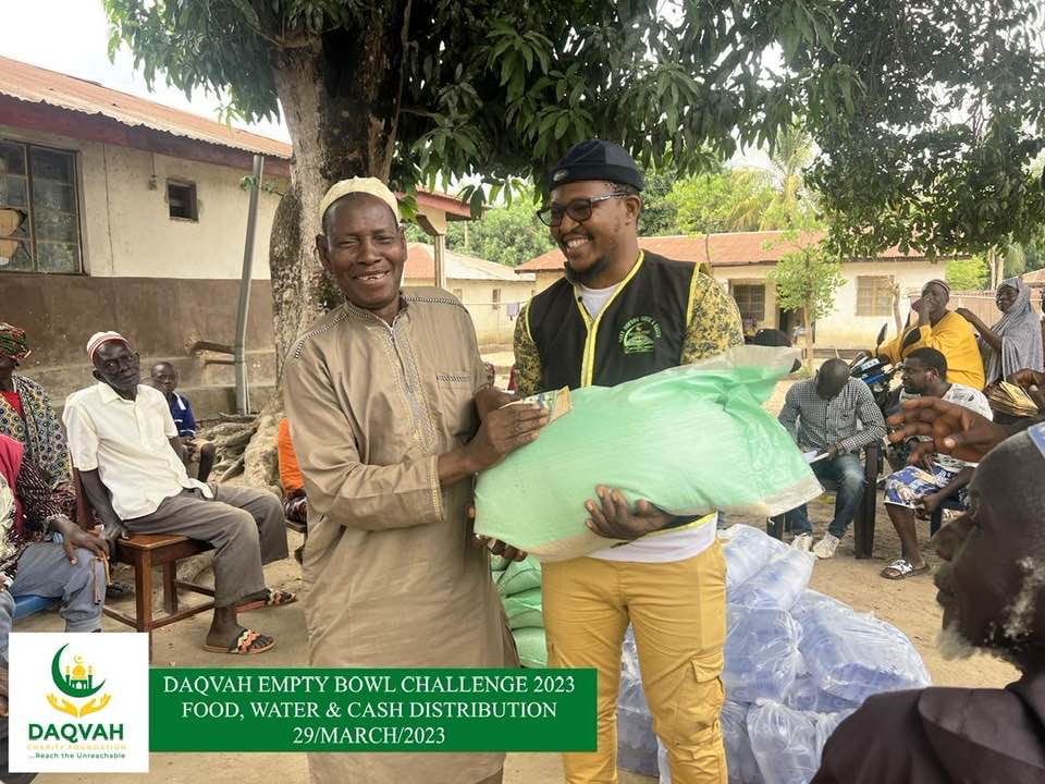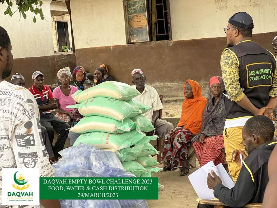 DAQVAH Charity Foundation on the seventh day of Ramadan donated bags of rice, bundles of water and cash to 15 households. This donation was done at the Sambaia Bendugu Town, benefiting Imams primarily.