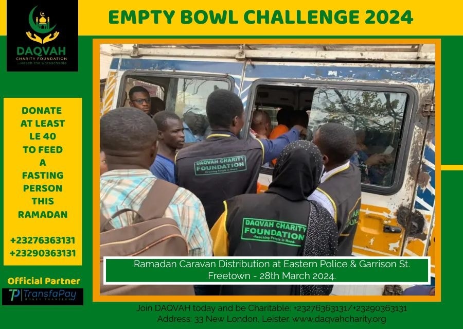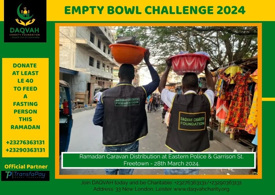 To be part of the DAQVAH Ramadan Empty Bowl Challenge, kindly send your donations to 076363131 or 090363131.