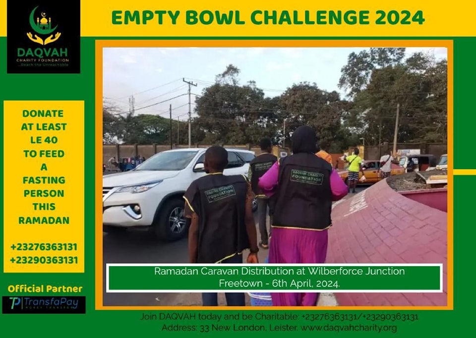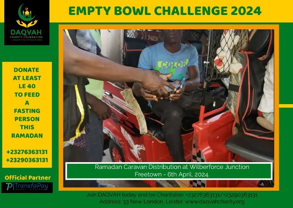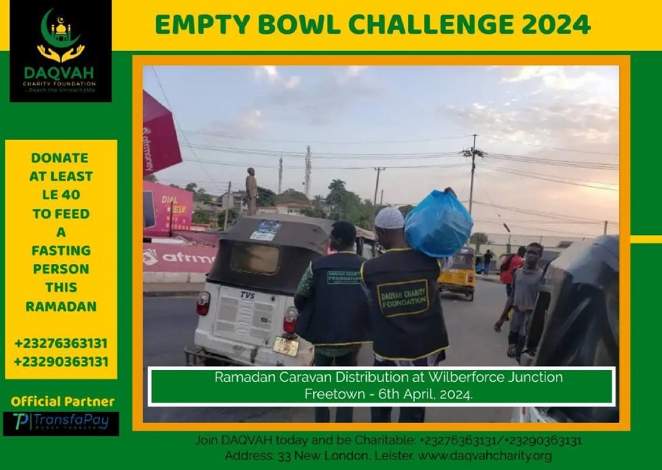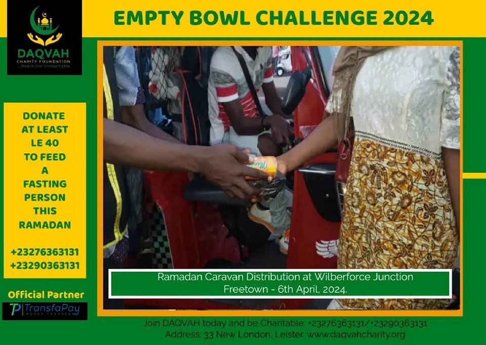To be part of the DAQVAH Ramadan Empty Bowl Challenge, kindly send your donations to 076363131 or 090363131.