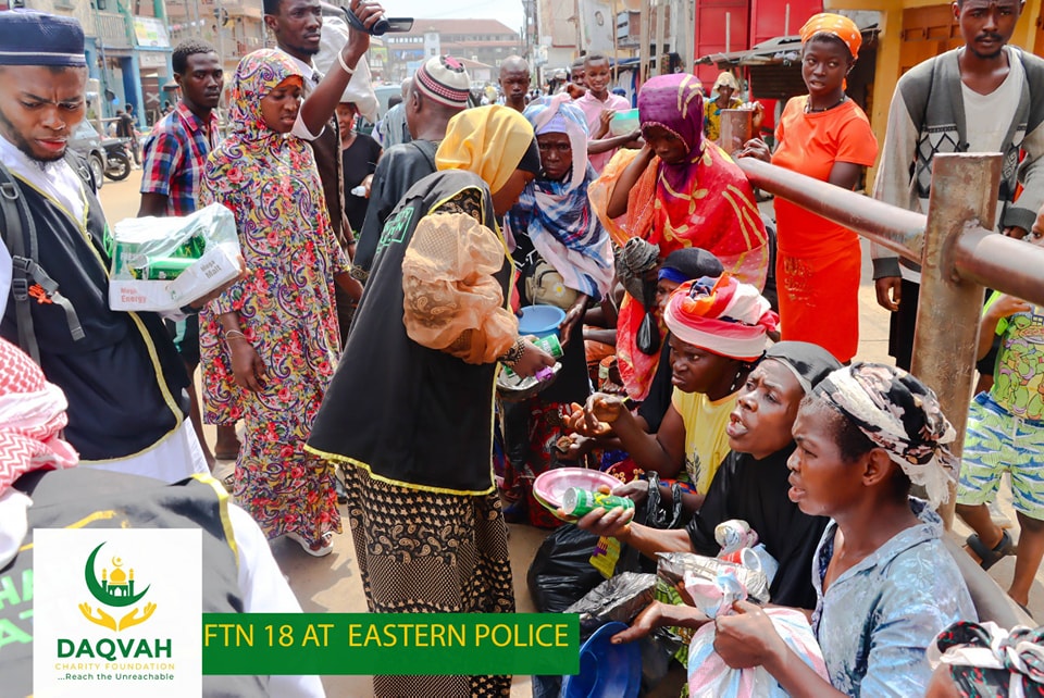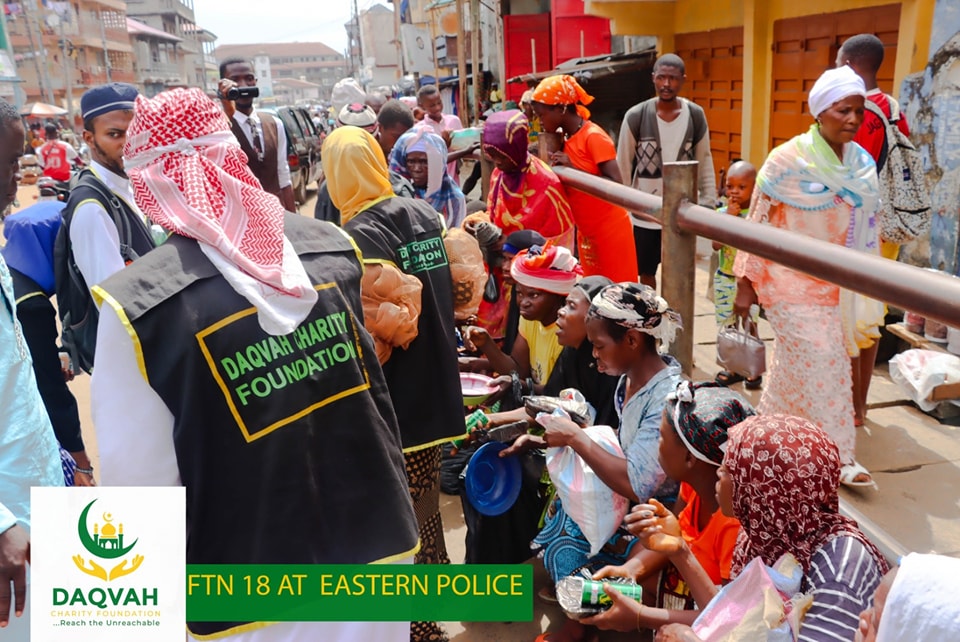 As a Foundation that primarily focuses on providing aid to the poor, needy and the less privileged, the DAQVAH Charity Foundation has on Friday 7th of June 2024 responded to the needs of the vulnerable by providing packs of food, drinks and water in the form of lunch along Kissy Road and PZ Roundabout. This exercise benefited 300 needy persons including Persons With Disabilities (PWDs), men, women and children.