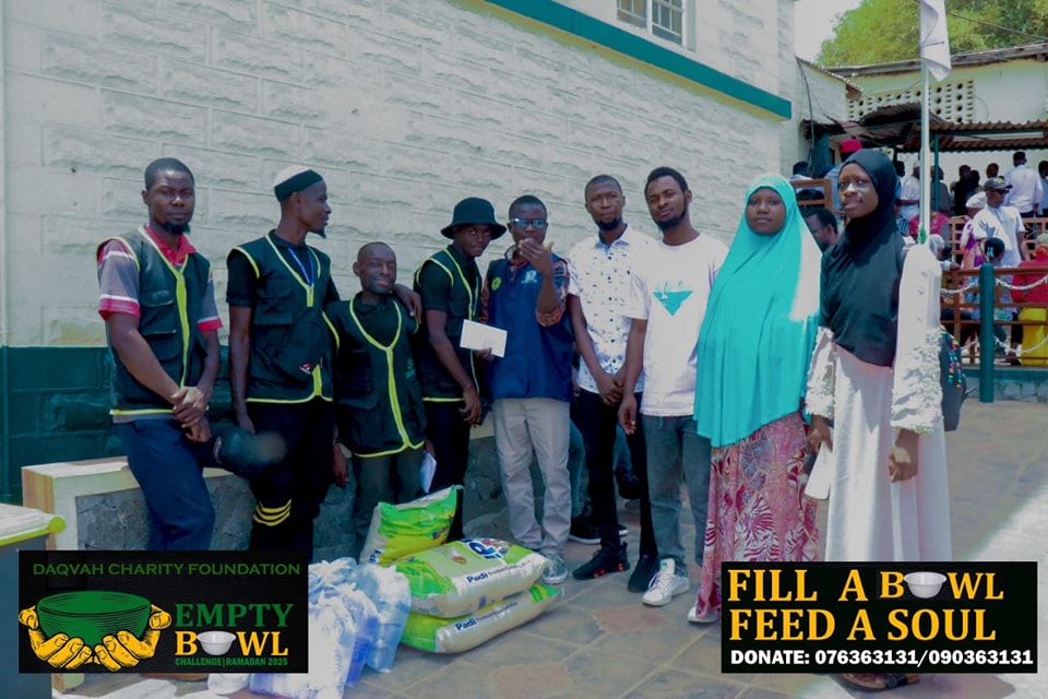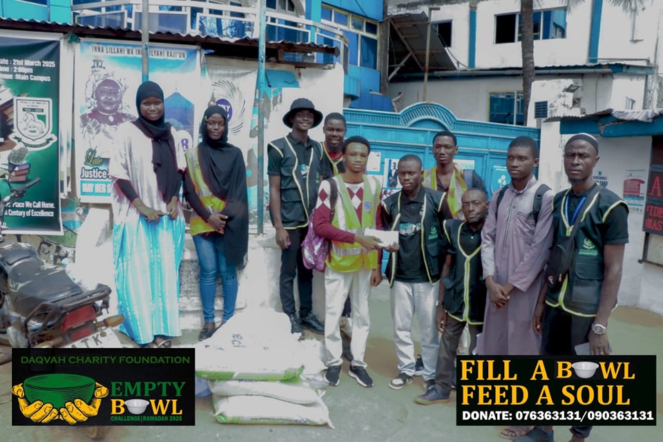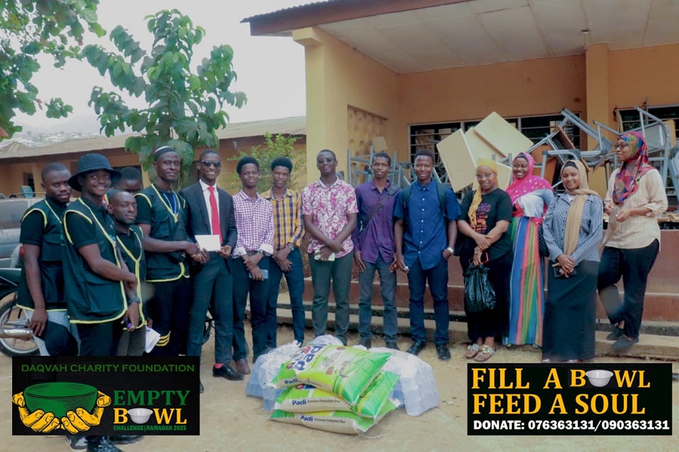 DAQVAH Charity Foundation continued its annual Ramadan Empty Bowl Feeding Program by making donations to the Muslim Jamaats of the Institute of Public Administration and Management (IPAM), the College of Medicine and Allied Health Sciences (COMAHS) in Kossoh Town, and University of Management and Technology (UNIMTECH), all located in Freetown. The Foundation donated bags of rice, bundles of water, and cash to aid the observance of Ramadan by university students.