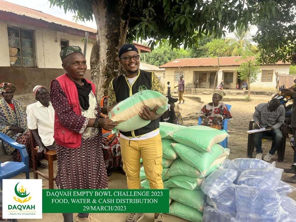 DAQVAH Charity Foundation on the seventh day of Ramadan donated bags of rice, bundles of water and cash to 15 households. This donation was done at the Sambaia Bendugu Town, benefiting Imams primarily.